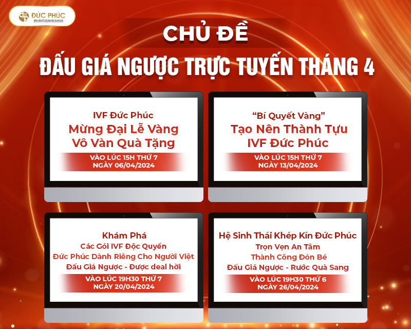 Chương trình đấu giá ngược thấp nhất và duy nhất chỉ có trong seri livestream của Bệnh viện Đức Phúc. Nhanh tay đăng ký tham dự ngay để có cơ hội nhận về tay suất IVF trọn gói chỉ từ 5 triệu đồng.