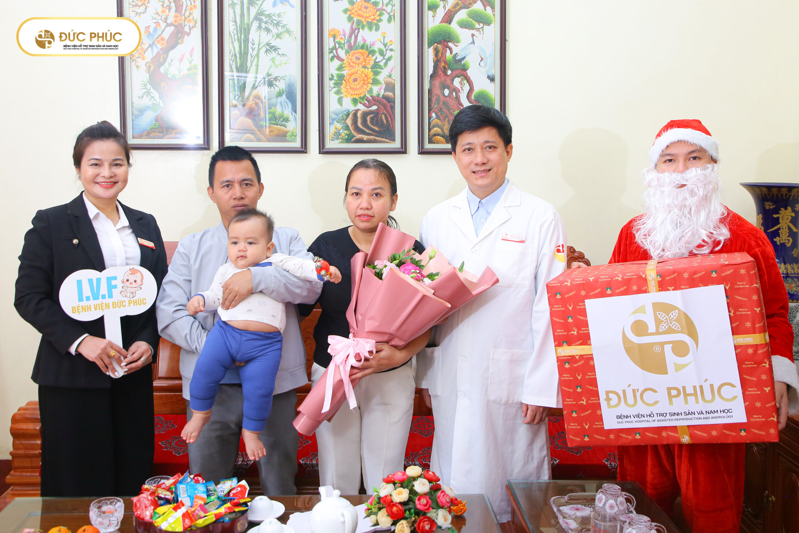 Đoàn công tác với dẫn đầu đoàn công tác là Bác sĩ CKI Hồ Trung Hiếu và sự xuất hiện của Ông già Noel đã mang tới món quà tặng Giáng Sinh ý nghĩa và niềm vui đến cho gia đình của chị Hưởng, anh Dũng. Gia đình anh chị là một trong nhiều các gia đình tại huyện Yên Mỹ – tỉnh Hưng Yên đã tin tưởng lựa chọn bệnh viện Đức Phúc là nơi gửi gắm niềm tin và đón được thiên thần IVF mạnh khỏe, đáng yêu.
