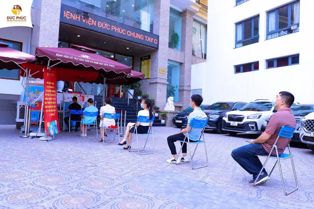 Miễn phí 10 lần xét nghiệm nhanh covid-19 cho khách hàng: Thực hiện công văn số 3848 BYT-DP của Bộ Y tế Quy định về việc tiếp nhận người bệnh khám sàng lọc SARS-CoV-2, Bệnh viện Đức Phúc là đơn vị tiên phong trong khối bệnh viện ngoài công lập, đã và đang thực hiện xét nghiệm nhanh Covid miễn phí cho tất cả các cặp vợ chồng khi đến khám chữa bệnh tại Bệnh viện. Tổng số lần được xét nghiệm miễn phí của cả 2 vợ chồng là 10 lần. Cùng với chính sách xét nghiệm nhanh Covid định kỳ cho toàn thể cán bộ nhân viên đang công tác tại Bệnh viện, Bệnh viện Đức Phúc đảm bảo một môi trường thăm khám sạch bóng Covid, giúp khách hàng yên tâm khi đến Bệnh viện điều trị.