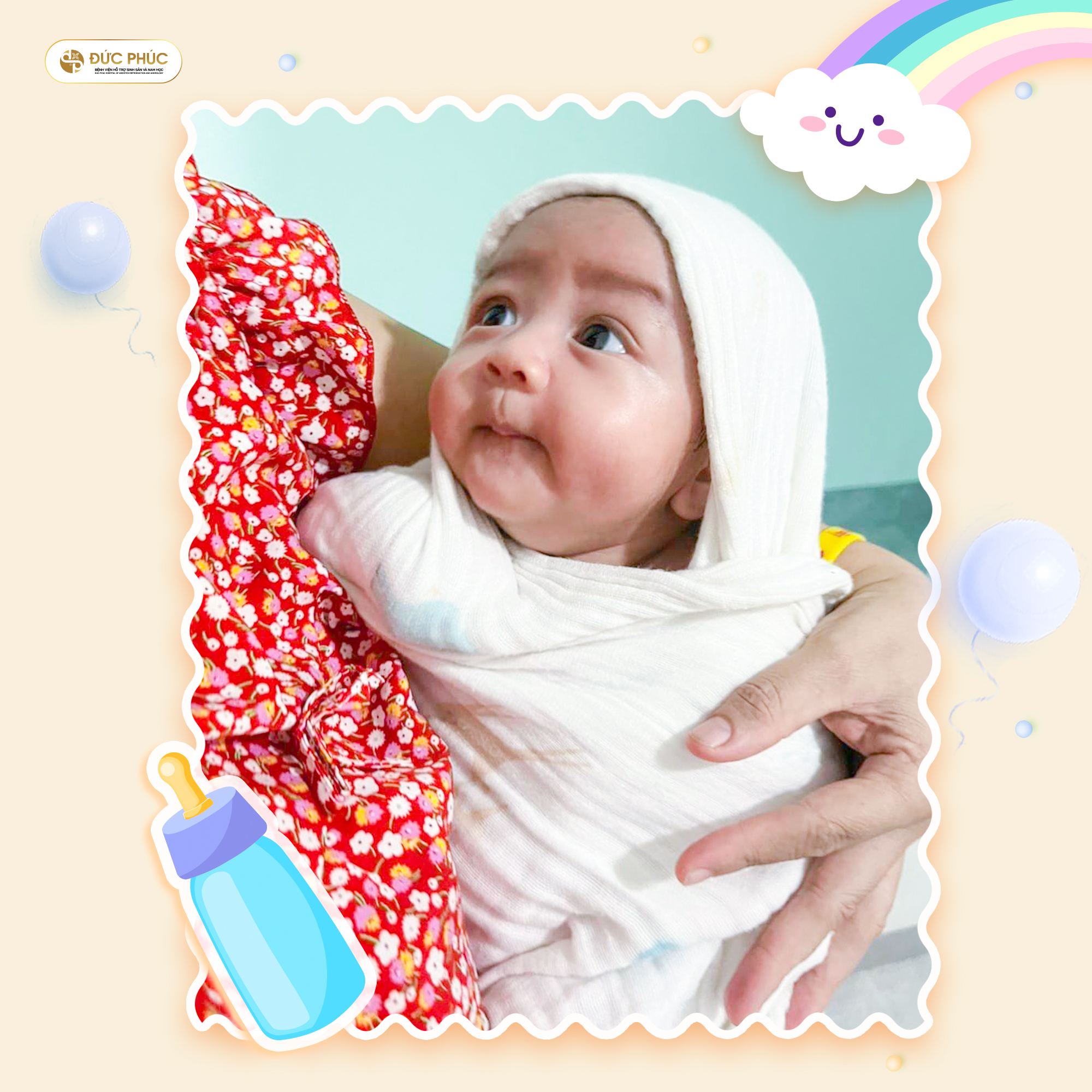 Phép màu đã thực sự xảy ra khi anh chị đã chuyển phôi thành công và vào một ngày tháng 11 rực rỡ, bé Nguyễn Hoàng Bảo đã cất tiếng khóc chào đời khỏe mạnh. Và điều đầu tiên mà anh chị làm sau khi em bé chào đời, chính là gọi điện ngay đến cho bác sĩ tại Bệnh viện Đức Phúc để báo tin vui và cảm ơn bác sĩ cũng như các nhân viên y tế tại Bệnh viện Đức Phúc đã mang đến phép màu kỳ diệu cho anh chị và gia đình!